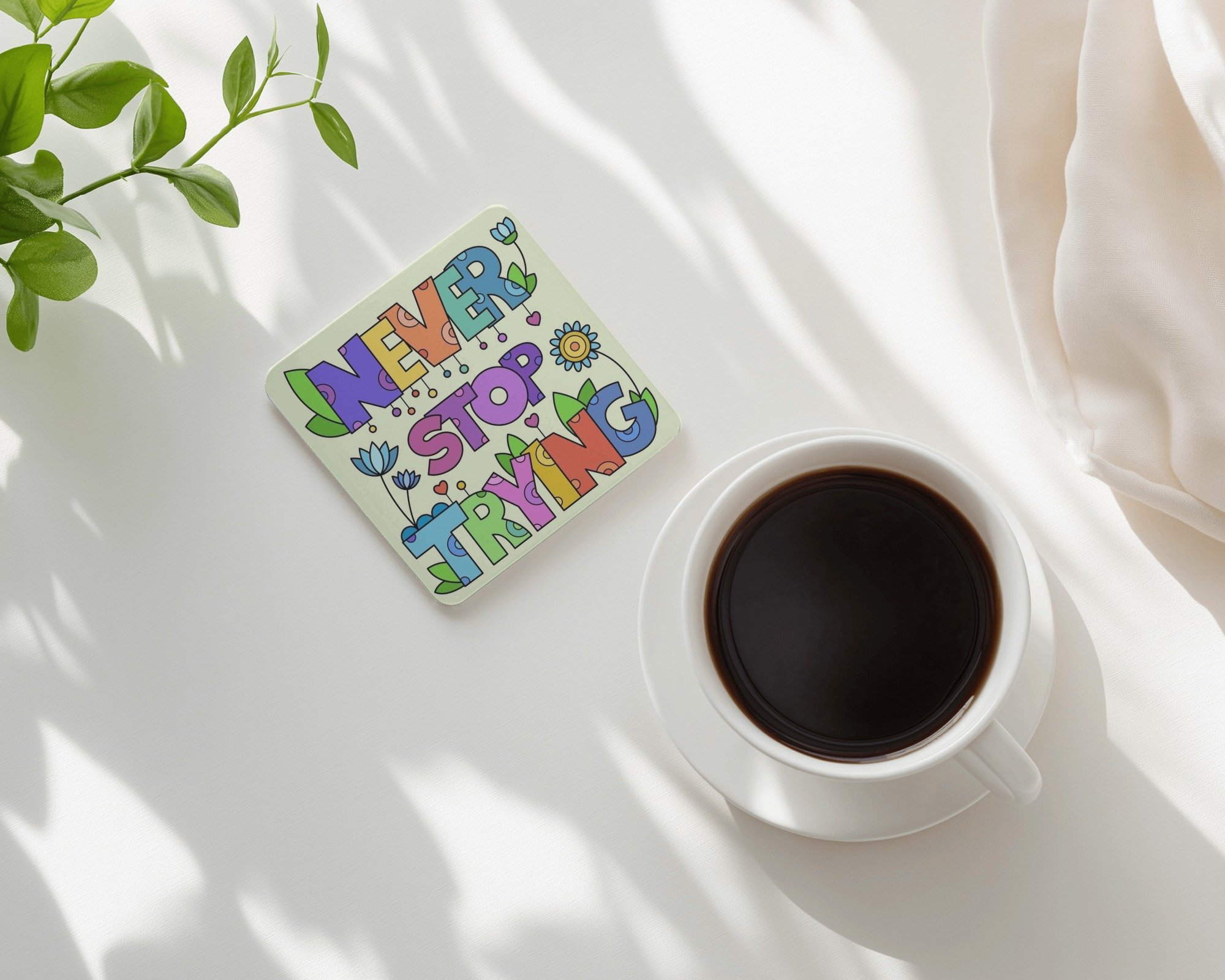 كوسترات توليفة عبارات تحفيزية بنقوش ملونة تفتح النفس تصميم كريستالي أنيق يضيف لمسة فنية لركن القهوة مثالية كهدية ملهمة للأصدقاء أو لزملاء العمل